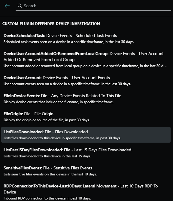 Plus d’informations dans le blog Next-Gen Device Incident Investigation & Threat Hunting with Custom Plugins