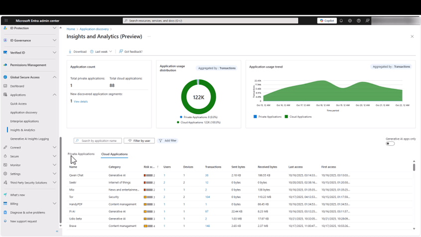 • Network file filtering (intégration avec Purview pour empêcher des données sensibles de basculer dans une application IA Unsanctioned)