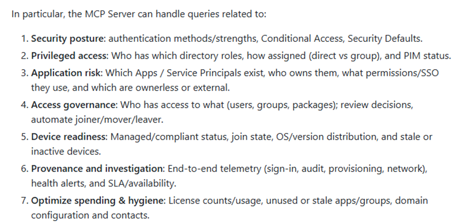 En public preview, il permet d’accéder aux données Entra en langage naturel (converti en Appels API Graph)