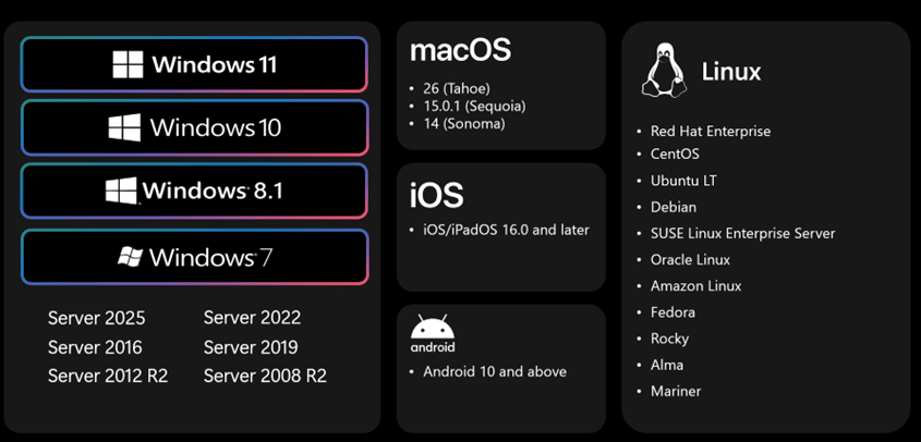 Support Windows 7 SP1, Windows Server 2008 R2 et suivants