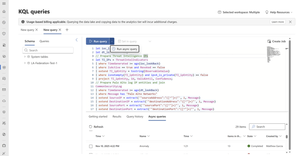• Requêtes KQL asynchrones