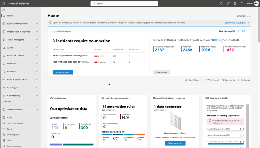 • Dynamic Threat Detection Agent : analyse continue des alertes et de la télémétrie pour des alertes dynamiques