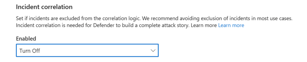 Plus d’informations : Exclude analytics rules from correlation in Microsoft Defender XDR