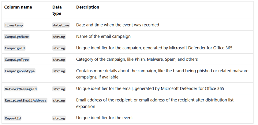 Plus d’informations : CampaignInfo table in the advanced hunting schema
